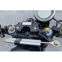 Steering damper kit fot Ducati Scrambler.All the components are CNC machined from light alloy billet and then given a coloured anodized surface finish, which, in addition to coming in a wide range of colours, delivers quality and lasting service life.The kit has been designed for the use of an Ohlins shock absorber stroke 68mm, code OH168S Silver OH168B Black; it must be purchased separately. Please check Specifications for model compatibility.Delivery note: At Sportsbike, we offer a wide range of high-quality products, many of which are sourced directly from Europe. We have stock both in Australia and shipped in directly from Europe. Therefore, please allow 1-3 weeks for delivery. This ensures we can provide the best selection and service for your specific needs. We will confirm the ETA of shipping within 24-48 hours of an order being placed. Thank you for your understanding and patience!