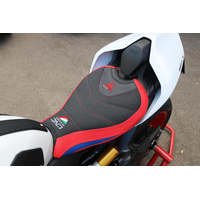 Seat cover made of Eco-Leather UltraGrip black and side layers in Eco-Leather CarbonLook black and red with reinforced double pointed stitching.- Waterproof and resistant to sunlight.- High resistence to chemical agents. Please check Specifications for model compatibility.Delivery note: At Sportsbike, we offer a wide range of high-quality products, many of which are sourced directly from Europe. We have stock both in Australia and shipped in directly from Europe. Therefore, please allow 1-3 weeks for delivery. This ensures we can provide the best selection and service for your specific needs. We will confirm the ETA of shipping within 24-48 hours of an order being placed. Thank you for your understanding and patience!