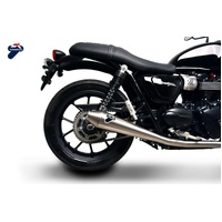 Termignoni offers the complete racing system in stainless steel , with a conical silencer dedicated to the TRIUMPH STREET TWIN 900 (year 2016-2020). The complete 2-in-1 system is composed of a conical stainless steel structure and characterised by a satin finish. The historic logo is proposed in a black and white metallic version, riveted onto the shirt. The improved performance and weight savings inherent in our racing character offer a more high-performance riding experience, which combined with our unmistakable #italiansound make your bike unique. Brand Triumph Model Street Twin YEAR OF PRODUCTION 2016 - 2020 Product Code T00909400SSX APPROVAL Racing MATERIAL Stainless steel