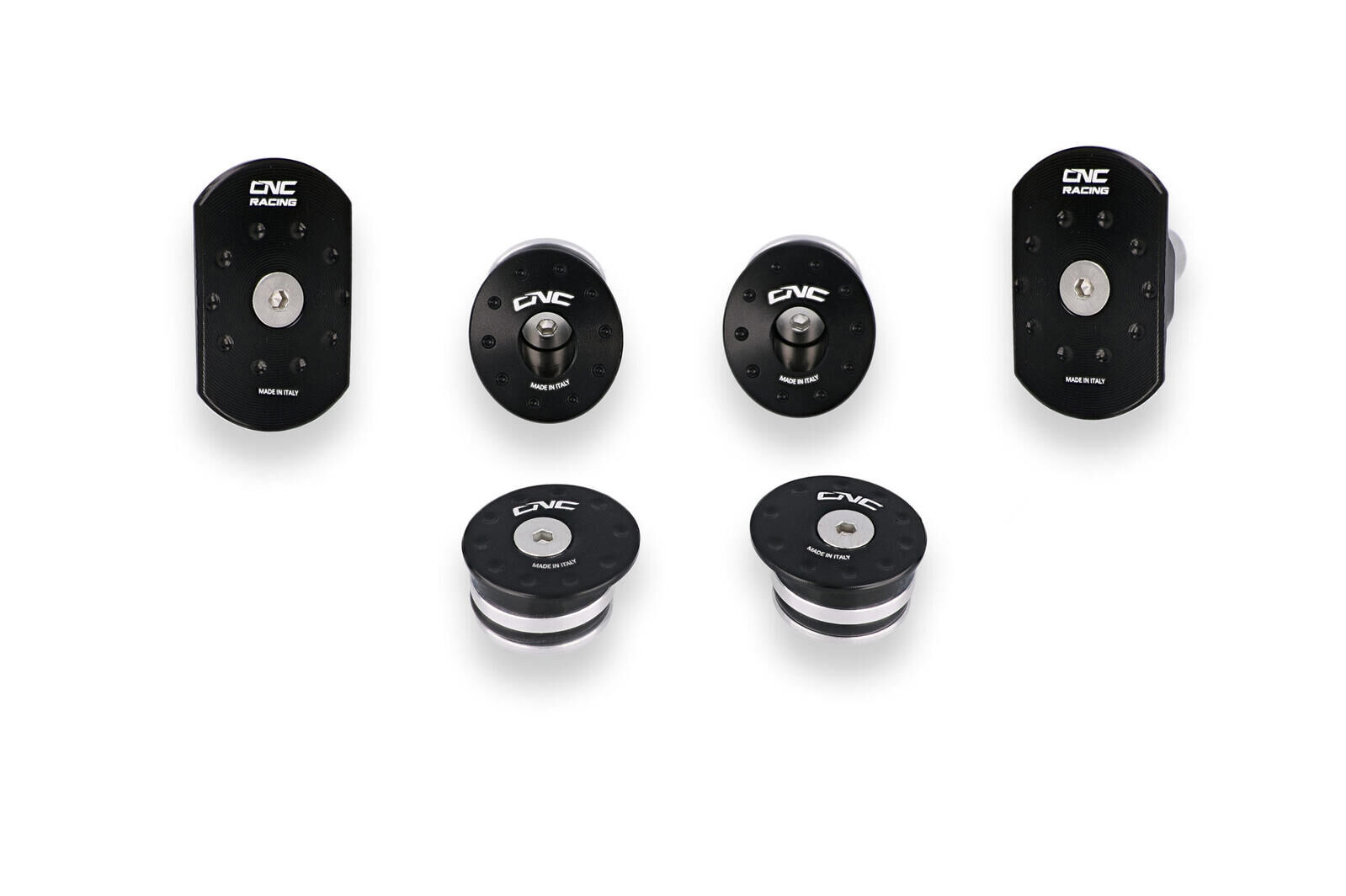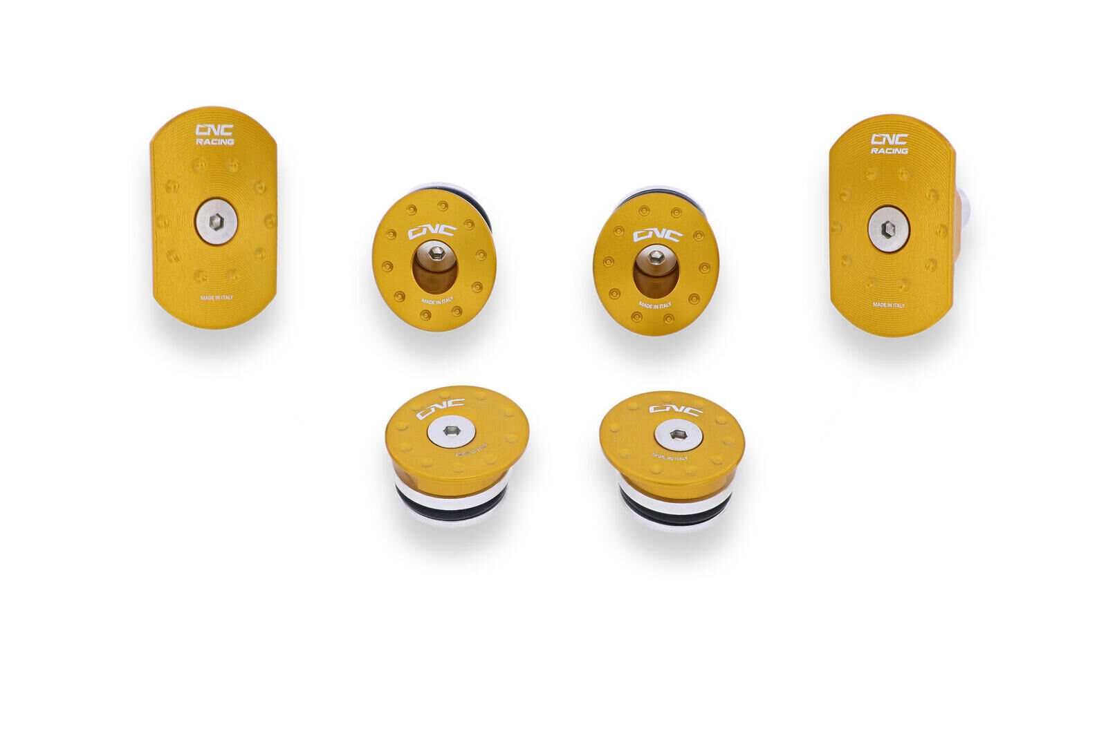 Caps frame made from solid alloy with subsequent anodizing.The kit consists of 6 plugs in each specific measures to adapt to the various holes in the chassis. Please check Specifications for model compatibility.Delivery note: At Sportsbike, we offer a wide range of high-quality products, many of which are sourced directly from Europe. We have stock both in Australia and shipped in directly from Europe. Therefore, please allow 1-3 weeks for delivery. This ensures we can provide the best selection and service for your specific needs. We will confirm the ETA of shipping within 24-48 hours of an order being placed. Thank you for your understanding and patience!