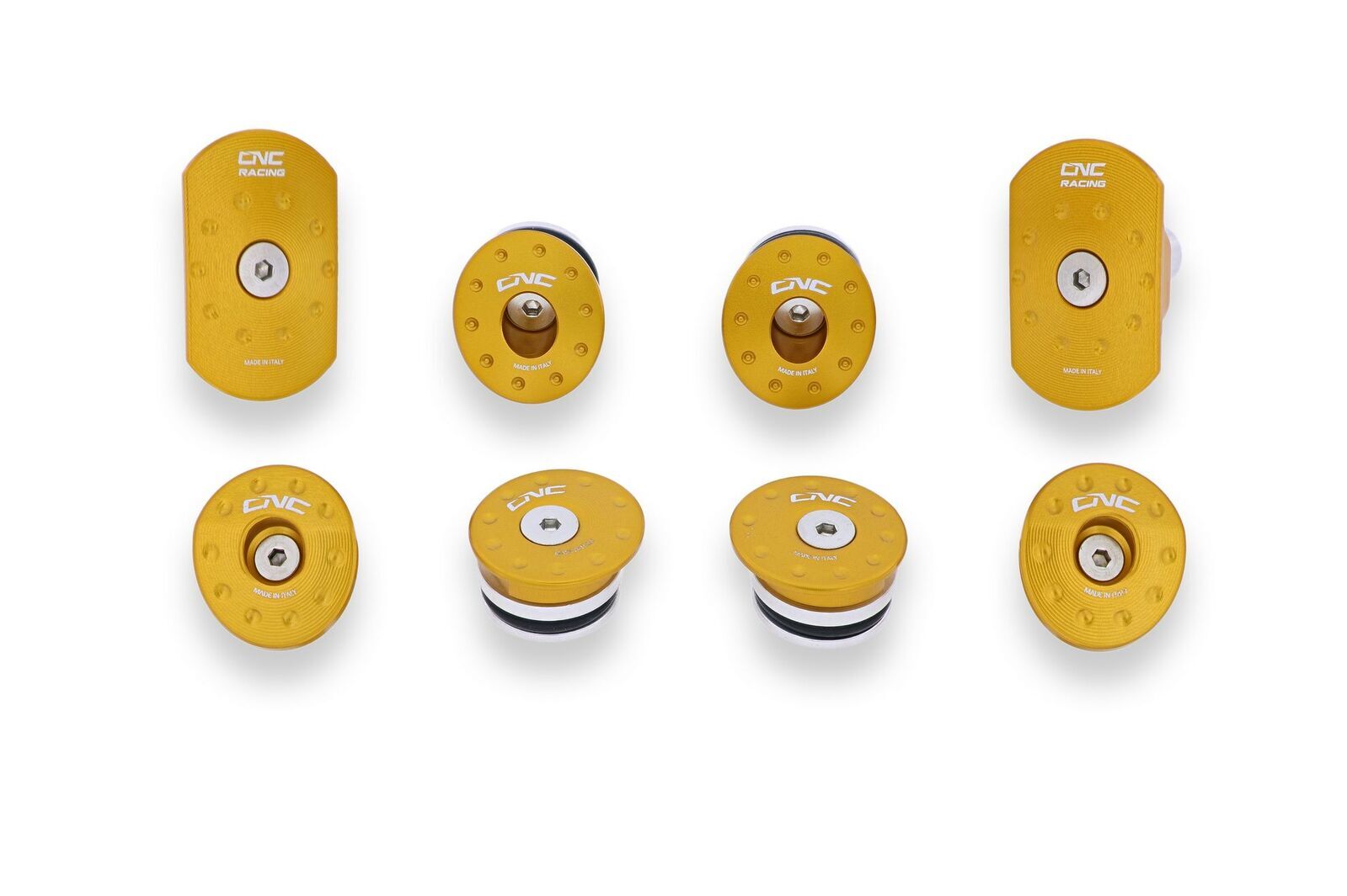 Frame plugs made from solid in light alloy with following surface anodizing. They allow plugging the unsightly frame holes, offering the bike a nicer and better quality appearance. The kit consists of 8 plugs with the same measurements as the various frame holes. Each plug includes an O-ring and aluminium counter disk. Installation is very simple and needs no modification. The product is supplied with all the screws necessary for the assembly. Spare parts can be purchased individually and can be seen in the pdf file schematic downloadable from this page. Please check Specifications for model compatibility.Delivery note: At Sportsbike, we offer a wide range of high-quality products, many of which are sourced directly from Europe. We have stock both in Australia and shipped in directly from Europe. Therefore, please allow 1-3 weeks for delivery. This ensures we can provide the best selection and service for your specific needs. We will confirm the ETA of shipping within 24-48 hours of an order being placed. Thank you for your understanding and patience!