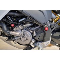 Frame caps for Ducati DesertX made in light alloy, machined from solid and then anodized.The kit consists of 4 caps, 2 for each side. Please check Specifications for model compatibility.Delivery note: At Sportsbike, we offer a wide range of high-quality products, many of which are sourced directly from Europe. We have stock both in Australia and shipped in directly from Europe. Therefore, please allow 1-3 weeks for delivery. This ensures we can provide the best selection and service for your specific needs. We will confirm the ETA of shipping within 24-48 hours of an order being placed. Thank you for your understanding and patience!