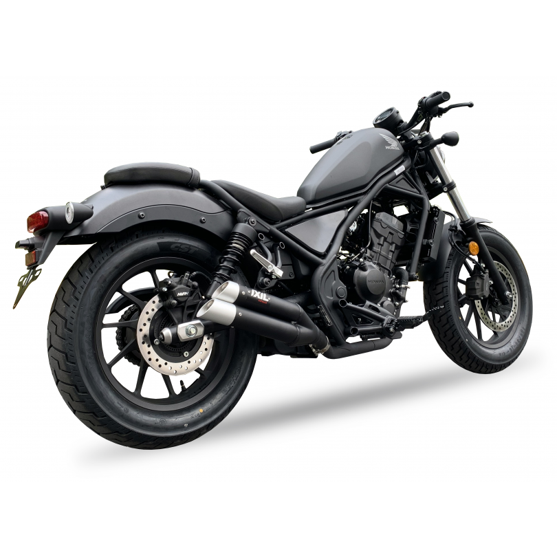 This is an IXIL SLIP ON - DUAL HYPERLOW BLACK XL To Suit HONDA REBEL CMX 300 17-24