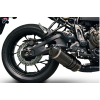 Termignoni presents the complete EURO4 approved system for the Yamaha XSR 700 (2016-2020) and MT-07 (2014-2020) , Tracer 700 (2016-2020) featuring the iconic “Relevance” silencer. The system is approved only if combined with the catalytic converter code: Y104CAT. The system in the “Full Black Edition” version features an exclusive black paint finish on the manifolds, which gives an even more aggressive and dedicated look to your bike. The silencer is characterized by the sleeve and end cap made of carbon. The improved performance and weight savings, inherent in our racing character, offer an even more powerful riding experience, which combined with our unmistakable #italiansound make your bike unique. Brand Yamaha Model MT-07 2014-2020 , XRS 700 2014-2020 YEAR OF PRODUCTION 2014 - 2020 Product Code Y104090CVB APPROVAL EURO 4 WEIGHT Weight difference compared to OEM -2 kg POWER [HP], Delta vs OEM MAX Gain 2.53 HP @ 8860 rpm TORQUE [Nm], Delta vs OEM Max Gain 1.95Nm@8770rpm MATERIAL MATERIAL Stainless Steel, Carbon