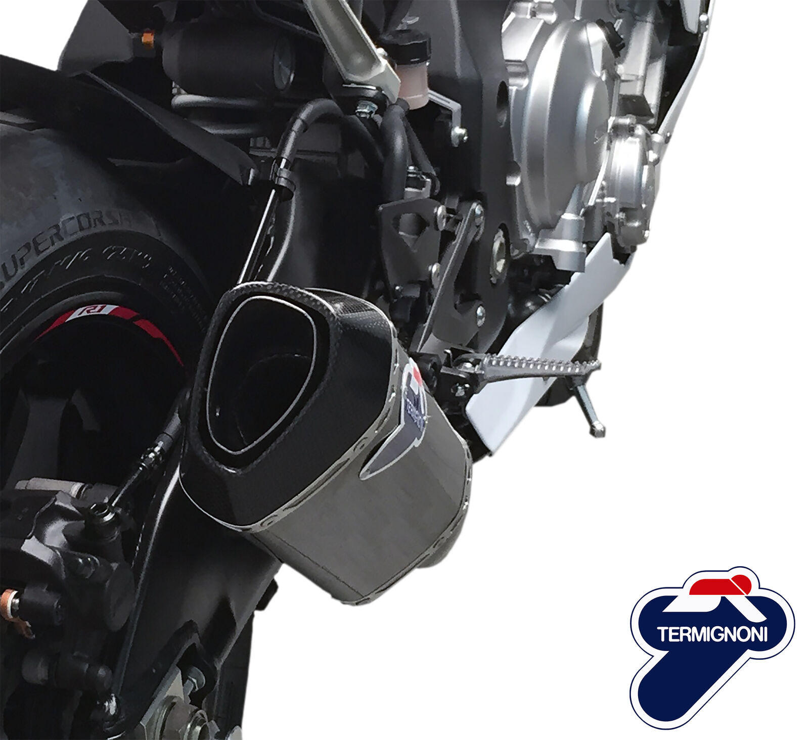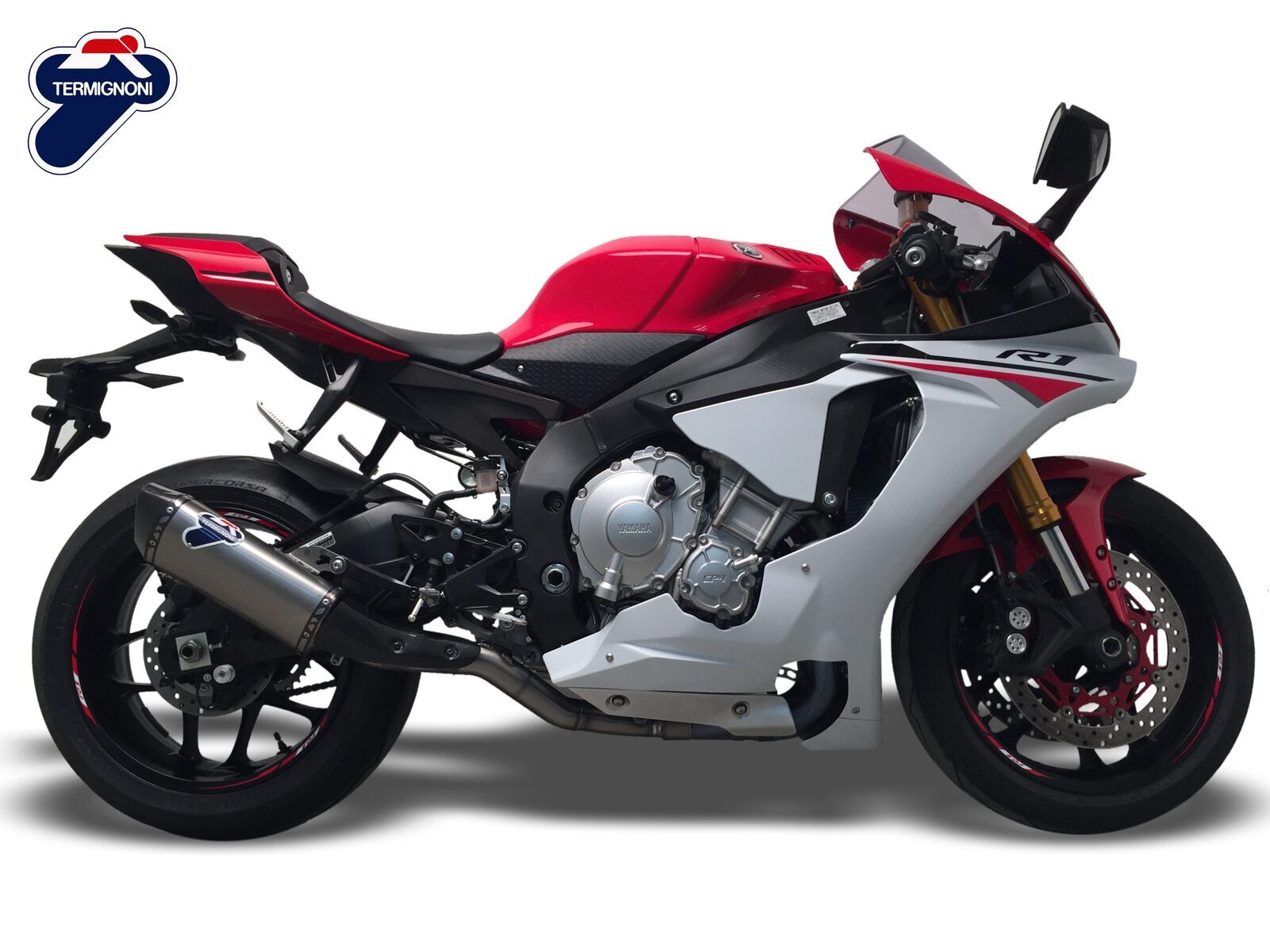 Specifications Brand Yamaha Model YZF-R1 2015-2023 YEAR OF PRODUCTION 2015 - 2023 Product Code Y106080TFT APPROVAL Euro 3 approved The FORCE muffler for the Yamaha YZF R1 (2015-2018) is made of titanium cuNb, the same alloy used by the Termignoni Racing Department to build racing exhaust systems. The muffler, interchangeable with the original, is available with a titanium sleeve and carbon end cap. Combined with the final body without catalytic converter (Code Y106CF000T ) it offers improved delivery at all revs and a power increase of 4 hp at 13,800 rpm. MATERIAL Titanium