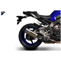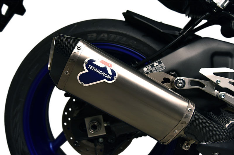 Specifications Brand Yamaha Model MT-10 2016-2020 YEAR OF PRODUCTION 2016 - 2020 Product Code Y11108040TTC APPROVAL Euro 3 approved Termignoni presents the Euro 3 approved slip-on silencer, “Force” design, for the Yamaha MT10. The muffler is made of the finest materials; titanium for the sleeve and carbon end cap, and the structure in a special titanium CuNb alloy. CuNb is a special titanium alloy that has excellent formability at room temperature, high mechanical strength even after 600°C, and resists oxidation above 800°C. This allows for a significant weight reduction while still guaranteeing a high level of performance and exhaust durability, far superior to a system made with a commercial titanium alloy. In terms of performance, the muffler with a power increase of + 2.56 Hp at 6,500 rpm and an increase of + 2 Nm at 6,500 rpm.