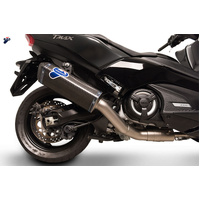 Specifications Brand Yamaha Model T-MAX 530 2017-2019 YEAR OF PRODUCTION 2017 - 2019 Product Code Y11309000ICC APPROVAL Approved only with the installation of the Y113CAT catalyst COMPLETE EXHAUST SYSTEM Termignoni offers the complete exhaust system, code Y113, available in a EURO 4 approved version (only if combined with the catalytic converter code Y113CAT), dedicated to the YAMAHA T-MAX 530 (year 2017-2019). The silencer is characterized by a carbon fiber sleeve and combined with titanium clamps, treated with a special process that gives it a blue color. The complete exhaust is equipped with a carbon end cap characterized by the exclusive “SCREAM” design that gives it an even more aggressive look, and by the historic riveted metal logo. In terms of weight, compared to the original system, the saving is 1.7 kg . The increase in power is quite significant at low revs, gaining +2.30 HP at 3,400 rpm, while it reaches +0.50 HP and +0.54 Nm at 6,500 rpm.