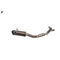 Specifications Brand Yamaha Model T-MAX 530 2017-2019 YEAR OF PRODUCTION 2017 - 2019 Product Code Y11309000ITC APPROVAL Approved only with the installation of the Y113CAT catalyst COMPLETE EXHAUST SYSTEM Termignoni offers the complete exhaust system, code Y113, available in a EURO 4 approved version (only if combined with the catalytic converter code Y113CAT), dedicated to the YAMAHA T-MAX 530 (year 2017-2019). The silencer is characterized by a titanium sleeve and combined with the relevant clamps, treated with a special process, which gives it a blue color. The complete exhaust is equipped with a carbon end cap characterized by the exclusive “SCREAM” design that gives it an even more aggressive look, and by the historic logo, riveted in metal. In terms of weight, the saving compared to the original system is 1.7 kg . The increase in power is quite significant at low revs, gaining +2.30 HP at 3,400 rpm, while it reaches +0.50 HP and +0.54 Nm at 6,500 rpm