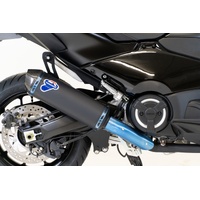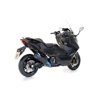 Specifications Brand Yamaha Model T-MAX 560 2020-2025 YEAR OF PRODUCTION 2020 - 2025 Product Code Y12609400BNC APPROVAL Racing The complete system for T-MAX 560 is made up of a “Racing” silencer with black painted titanium sleeve, carbon end cap, blue titanium clamps, black painted stainless steel connection and the classic Termignoni logo riveted to the silencer sleeve. The manifold group is made of black painted stainless steel. A Blue Titanium end cap is supplied, matching the Blue colour of the muffler clamps. The Termignoni logo with Titanium writing is lasered onto the heat shield.