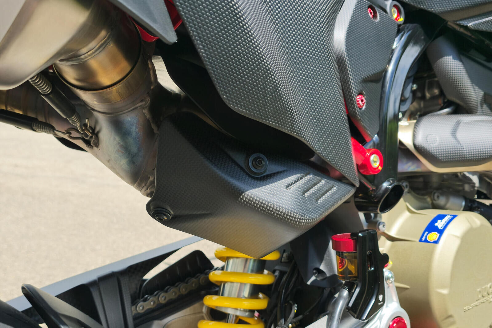 Rear heat guard of the exhaust pipe for Ducati Hypermotard 698 Mono made in carbon fiber texture plain with autoclave process. On the whole lower side there is a heat reflective liningIt replaces the original plastic part without any modification. Please check Specifications for model compatibility.Delivery note: At Sportsbike, we offer a wide range of high-quality products, many of which are sourced directly from Europe. We have stock both in Australia and shipped in directly from Europe. Therefore, please allow 1-3 weeks for delivery. This ensures we can provide the best selection and service for your specific needs. We will confirm the ETA of shipping within 24-48 hours of an order being placed. Thank you for your understanding and patience!