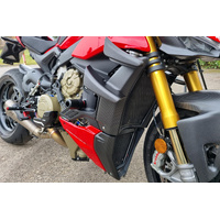 Side covers for water and oil radiators in carbon fiber with texture plain and matt finish; 100% carbon worked in autoclave.The kit consists of 4 pieces, two on each side. Please check Specifications for model compatibility.Delivery note: At Sportsbike, we offer a wide range of high-quality products, many of which are sourced directly from Europe. We have stock both in Australia and shipped in directly from Europe. Therefore, please allow 1-3 weeks for delivery. This ensures we can provide the best selection and service for your specific needs. We will confirm the ETA of shipping within 24-48 hours of an order being placed. Thank you for your understanding and patience!