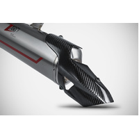 Handcrafted in Italy from AISI 304 stainless steel, the slip-on comes standard with a carbon fiber heat shield. It is available in both racing or E5 homologated version. Weight is significantly reduced from 4.9 kg (10.8 lbs) for the OEM exhaust to just 2.5 kg (5.5 lbs) for the homologated version and 2.2 kg (4.9 lbs) for the racing version, improving handling. The power increase is +1.6 HP for the racing version and +1 HP for the homologated one.