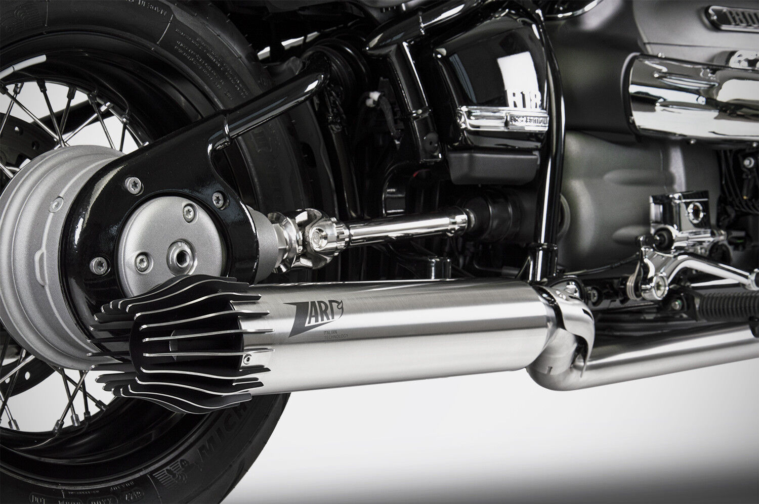 The Zard Racing 2>2 Full Kit, handcrafted in Italy using high-quality materials, is designed to enhance both the performance and aesthetics of your BMW R18. Available in stainless steel, with black treatment, mirror-polished, or titanium, for maximum customization of your exhaust system's look.