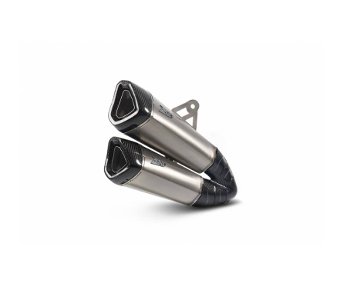 BRAND: Zard SKU: ZID002S10TCOThe Zard Slip-Ons for the Indian FTR 1200, an iconic motorcycle known for its style and character, are designed for riders who demand the best on both road and track. They are handcrafted in Italy using top-quality materials: AISI 304 stainless steel structure, titanium sleeve, carbon fiber end cap and heat shield. Available in both racing and Euro 4 homologated versions.
