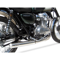 BRAND: Zard SKU: ZKW172S00SSRThe Zard "Cross" Full Kit for the Kawasaki W800 exhaust enhances the bike's vintage character with artisanal quality and performance. Handcrafted in Italy, this exhaust combines retro styling with technical innovation for a unique look and deep, engaging sound.
