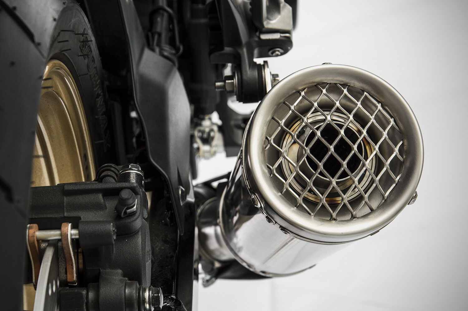 The muffler is made of AISI 304 stainless steel, featuring a mesh end cap and stainless steel sleeve, ensuring durability and an elegant finish. The Zard muffler weighs 1.6 kg (3.5 lbs), compared to 2 kg of the original exhaust, offering a weight saving of −0.4 kg (−0.9 lbs). Installation is simple and plug-&-play, requiring no modifications or ECU remapping.