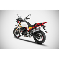 BRAND: Zard SKU: ZMG085S10SCOThe Slip-On by Zard for the Moto Guzzi V85 TT is handcrafted in Italy with great attention to detail and performance. The structure is made of AISI 304 stainless steel, with a sleeve available in either stainless steel or titanium. The end cap is made of carbon fiber, and the finish can be either satin or black. A carbon fiber heat shield is included in the kit.
