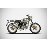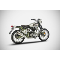 BRAND: Zard SKU: ZRE540S10SSRThe Zard Slip-On for the Royal Enfield® Bullet 500 Trials is entirely designed and handcrafted in Italy. Made with structure, sleeve, and end cap in AISI 304 stainless steel, they offer artisanal quality and a refined aesthetic.