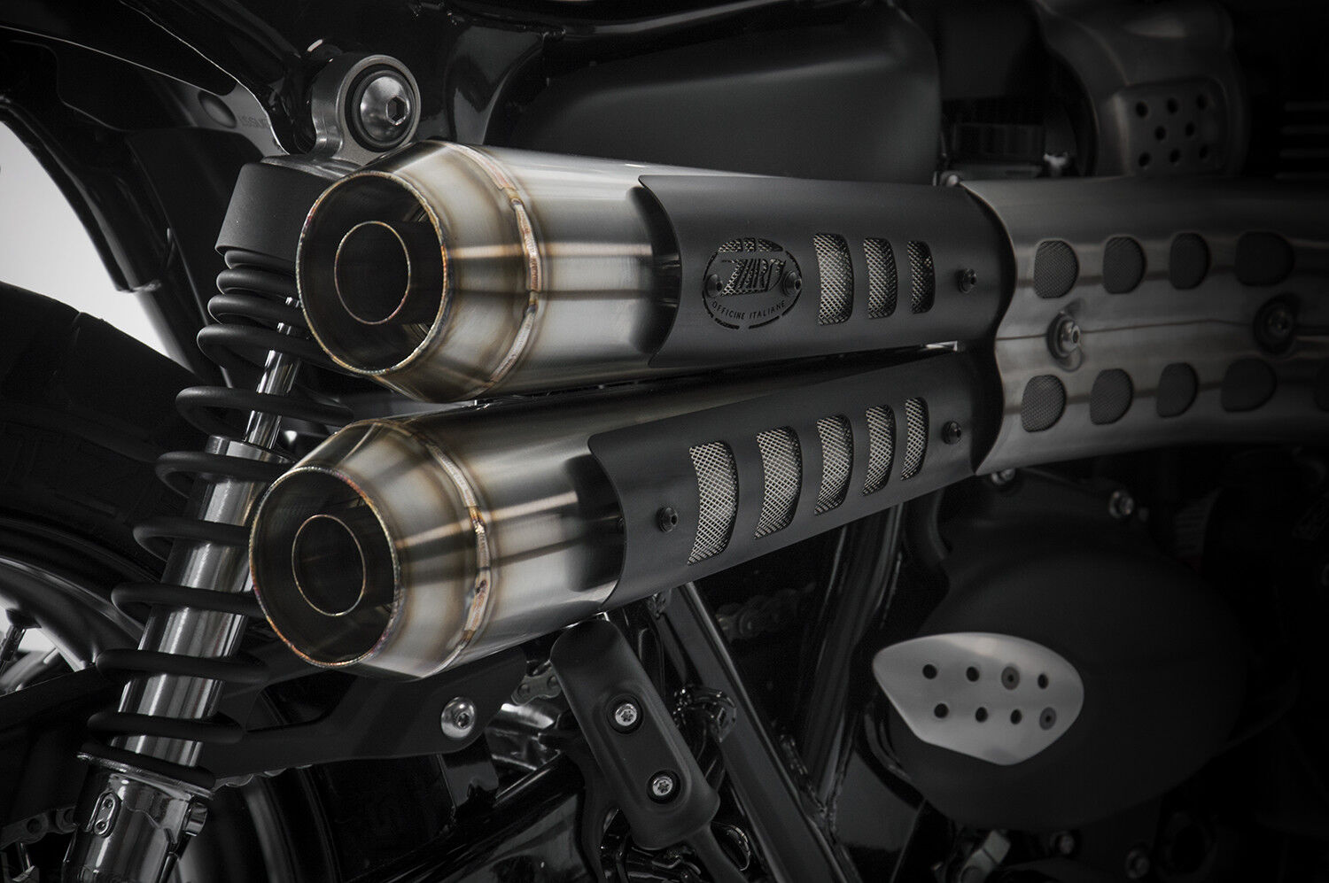 Entirely handmade in Italy, the system is composed of two AISI 304 stainless steel silencers, with both sleeve and end cap in stainless steel, ensuring superior strength and durability. The kit is available in a satin finish, satin finish with black heat shield, or black Cerakote®, giving the bike an elegant and modern look.