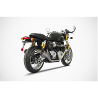 BRAND: Zard SKU: ZTP068S10SSR-BThe Slip-Ons for the Triumph Thruxton R 1200, handcrafted by Officine Italiane Zard, enhance the classic look of the Thruxton R with elegant finishes and a deeper sound.