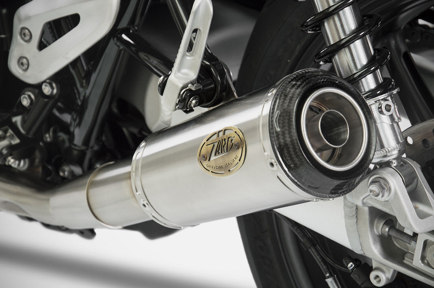 With a significant power increase and a -2 kg (-4.4 lbs) weight reduction, weighing just 3.8 kg (8.4 lbs), the Zard Slip-Ons provide a lighter and more responsive ride. The resulting sound is deep and full-bodied, perfectly matching the character of the Speed Twin 1200. Installation is simple, with no need for structural modifications, and the compact design improves both the aesthetics and overall performance of the bike.