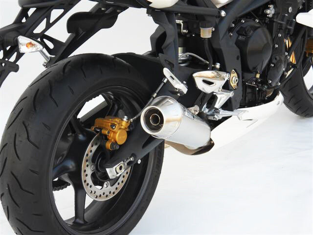 This system delivers an aggressive and full-bodied sound, perfectly in line with the spirit of the Street Triple 675. The compact design integrates harmoniously with the muscular lines of the bike, adding character and personality. The product is available in both racing and Euro 3 homologated versions.