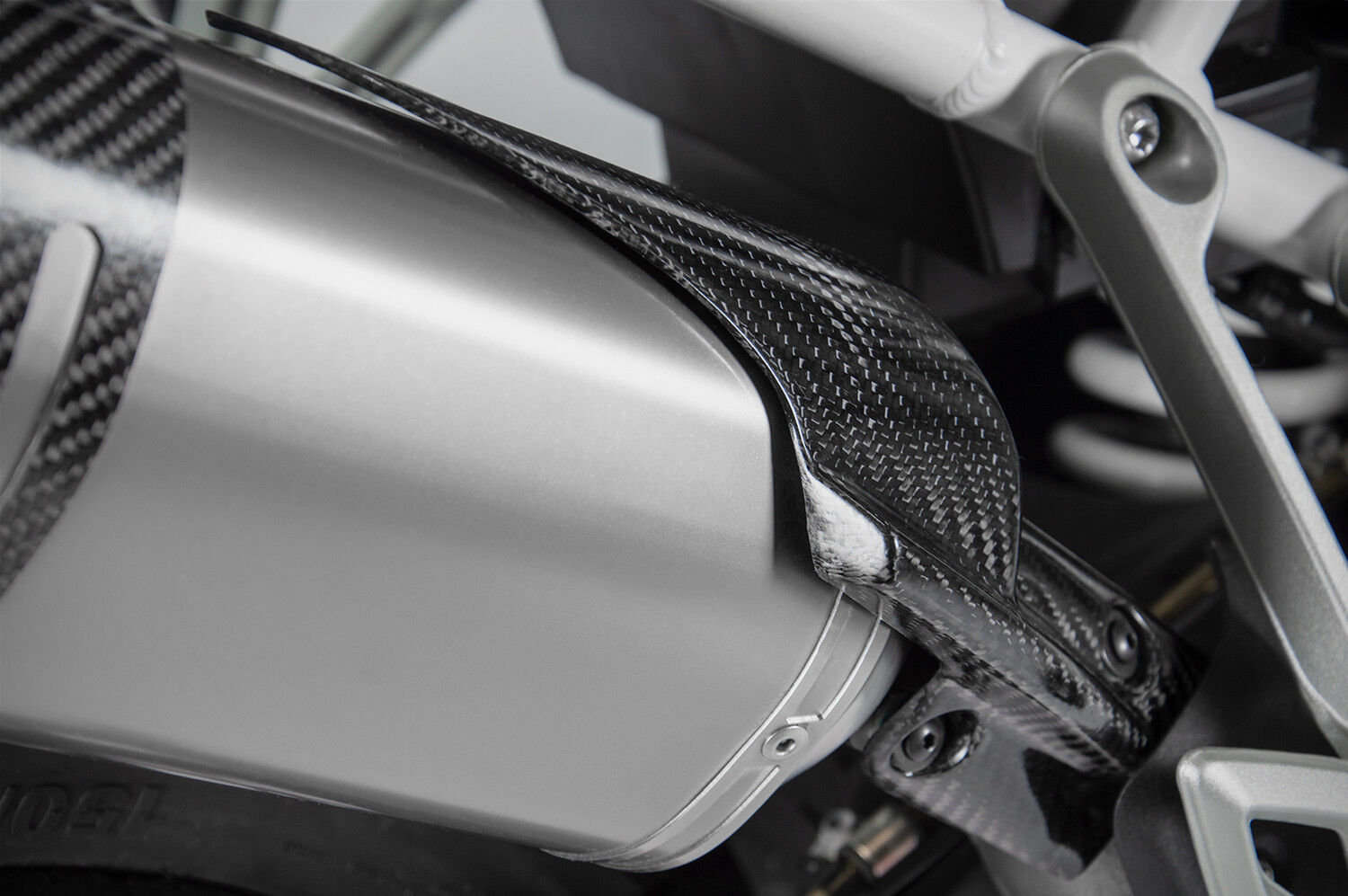 NOTE: Compatible with side panniers and center stand. Carbon fiber heat shield, clamp, and end cap included.