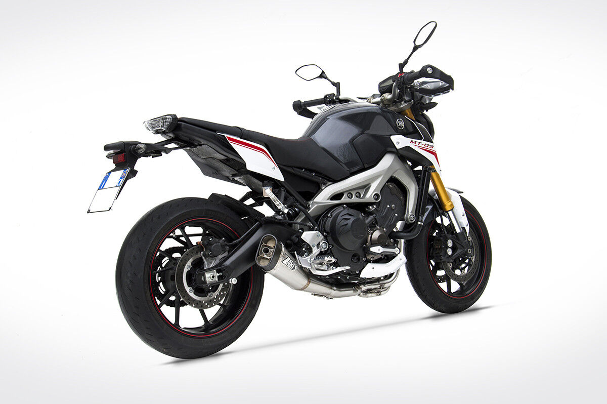 BRAND: Zard SKU: ZYH096S00SCOThe 3‑in‑1 Full Kit by Zard for the Yamaha MT‑09 is entirely handcrafted in Italy, combining artisanal care and premium quality. The structure is made of AISI 304 stainless steel, featuring a sleeve in stainless steel and an end cap available in either carbon fiber or stainless steel. The finish is available in brushed or black ceramic coating.