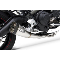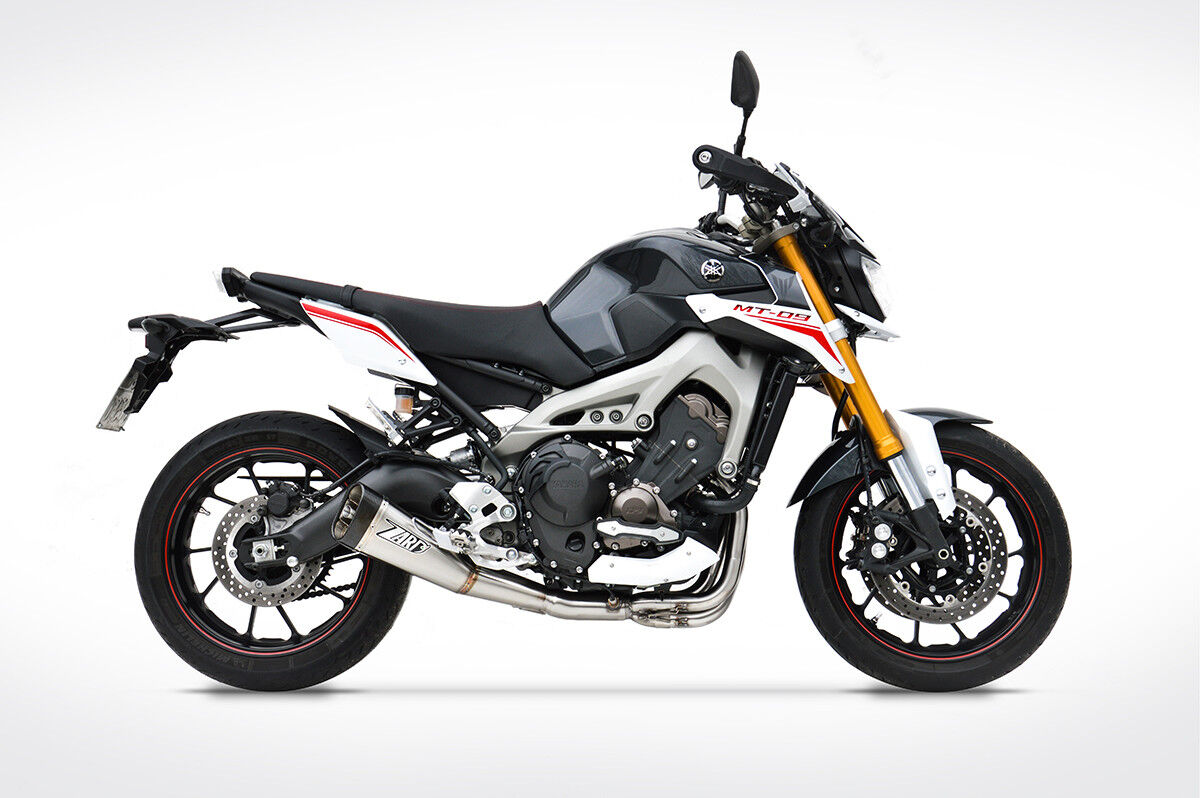 BRAND: Zard SKU: ZYH096S00SCR-BThe 3‑in‑1 Full Kit by Zard for the Yamaha MT‑09 is entirely handcrafted in Italy, combining artisanal care and premium quality. The structure is made of AISI 304 stainless steel, featuring a sleeve in stainless steel and an end cap available in either carbon fiber or stainless steel. The finish is available in brushed or black ceramic coating.