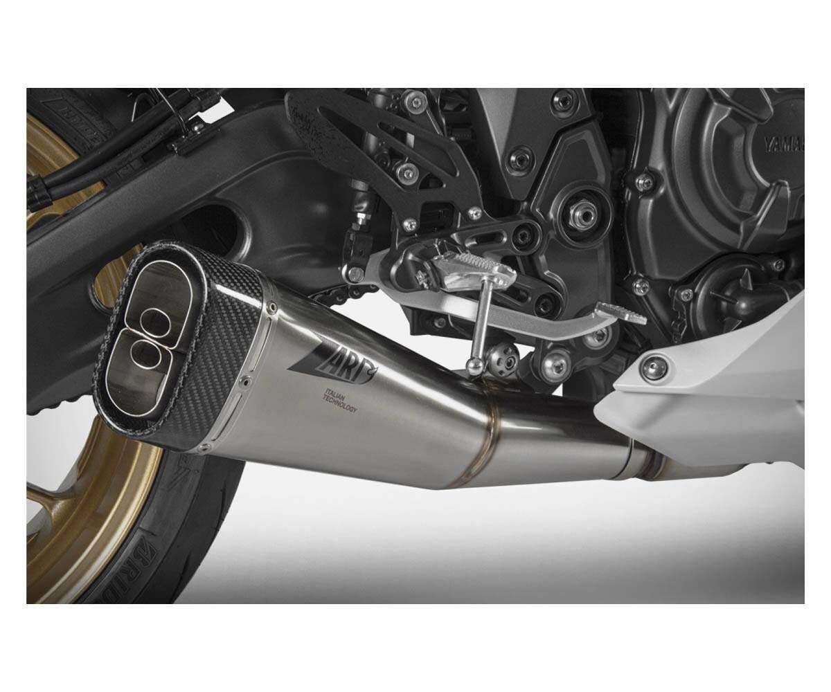 BRAND: Zard SKU: ZYH107S00SCRThe Zard Racing Full Kit for the Yamaha R7 is designed to deliver maximum performance, reduced weight, and a deep, aggressive sound. The 2>1 configuration, developed specifically for this bike, enhances the R7’s sporty character, improving throttle response and overall riding dynamics. Entirely handcrafted in Italy, the kit features a structure and sleeve in AISI 304 stainless steel, with an end cap available in stainless steel or carbon fiber. Satin or black ceramic coating finish options.