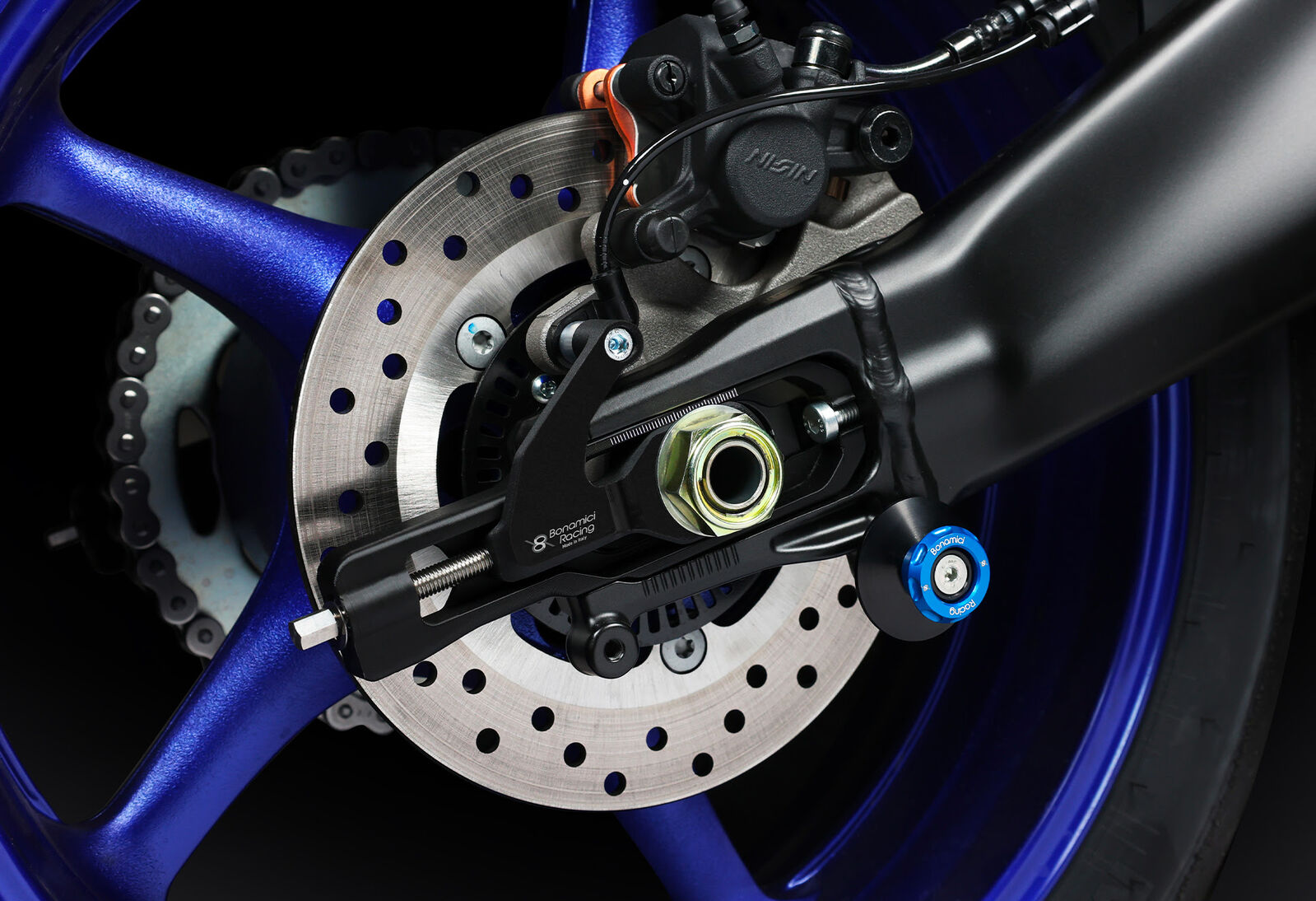 Bonamici Racing Chain Adjuster With Caliper Support To Suit Yamaha YZF-R9 (2025 - Onwards) - Black