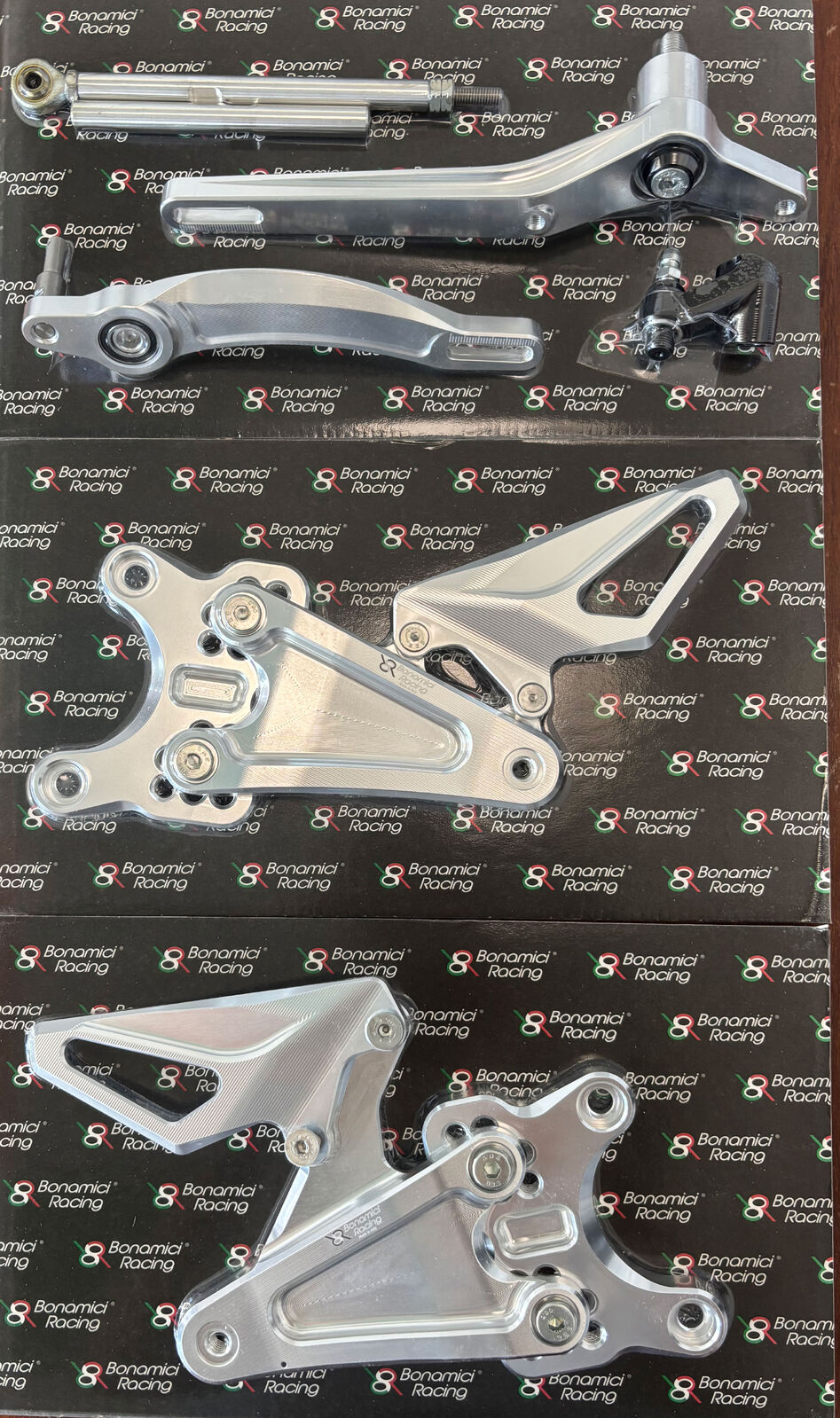 BRAND: Bonamici Racing SKU: H016-KK07_SINOTE: These rearsets are silver in colour (first picture). The additional photos showing them in black are for illustration purposes to show how they're fitted.