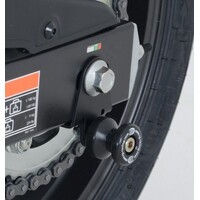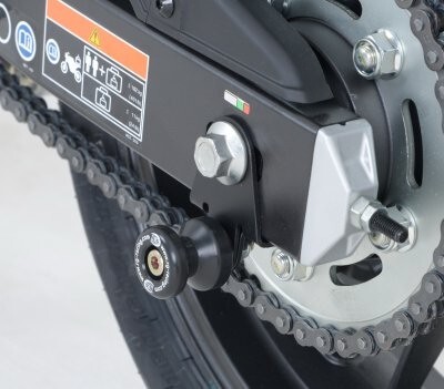 The oversize cotton reels serve a dual purpose: they protect your swingarm, rear disc, and chain areas from impact or abrasion, and also allow your bike to be easily lifted using a paddock stand with hooks (recommended R&G stand hook code: SH0001).