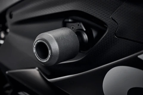 These frame sliders for the RS660 require no modification to your bike as they simply attach to the existing mounting points.