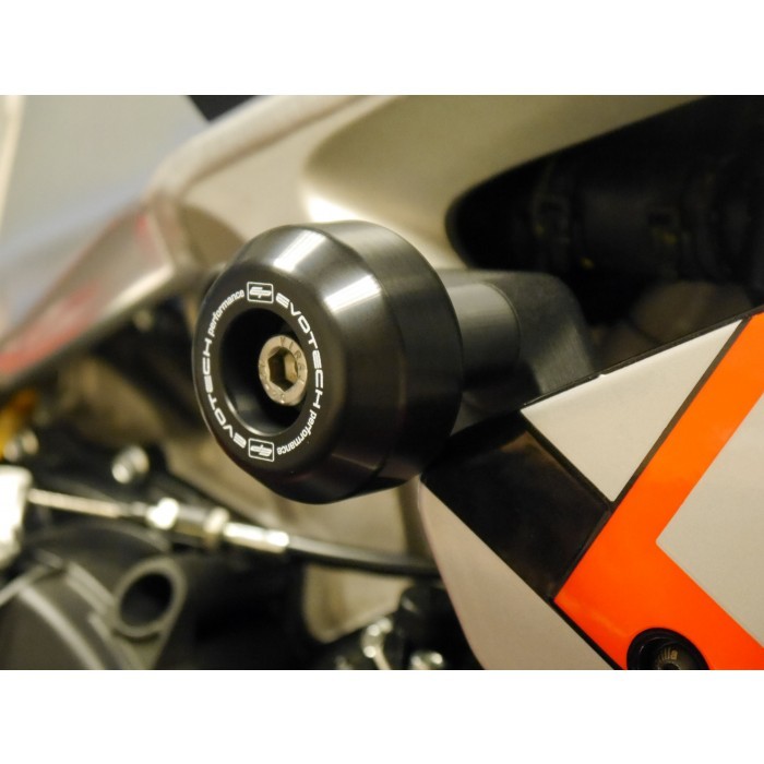 BRAND: Evotech Performance SKU: PRN011769-06Created by Evotech performance, these crash bobbins (frame sliders) for the RSV4 Factory are made from high performance engineering polymer with mounts that are CNC machined from aircraft-grade aluminium and colour anodised.