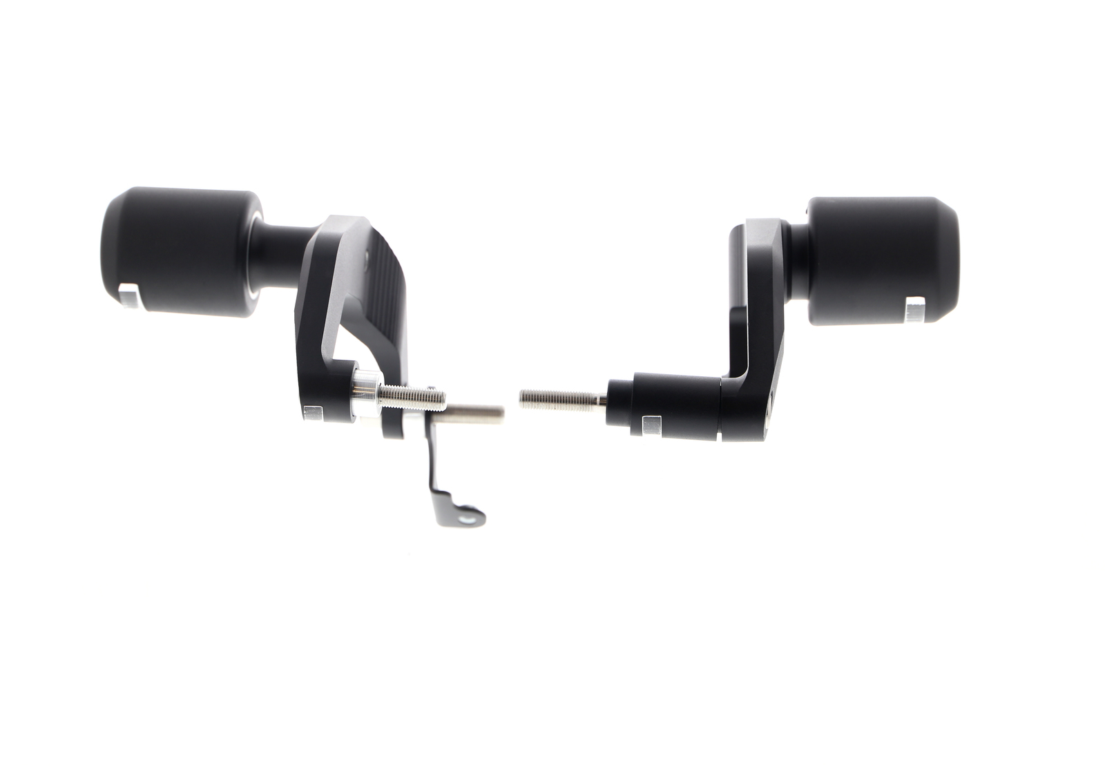Protect your CBR650R in the event of a crash or spill with these frame sliders from Evotech Performance. The mounting brackets are CNC machined from aircraft-grade aluminium, while the crash bobbins (frame sliders) are made from high performance engineering polymer.