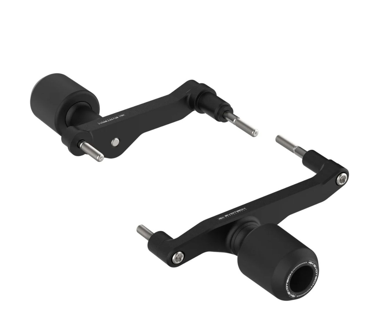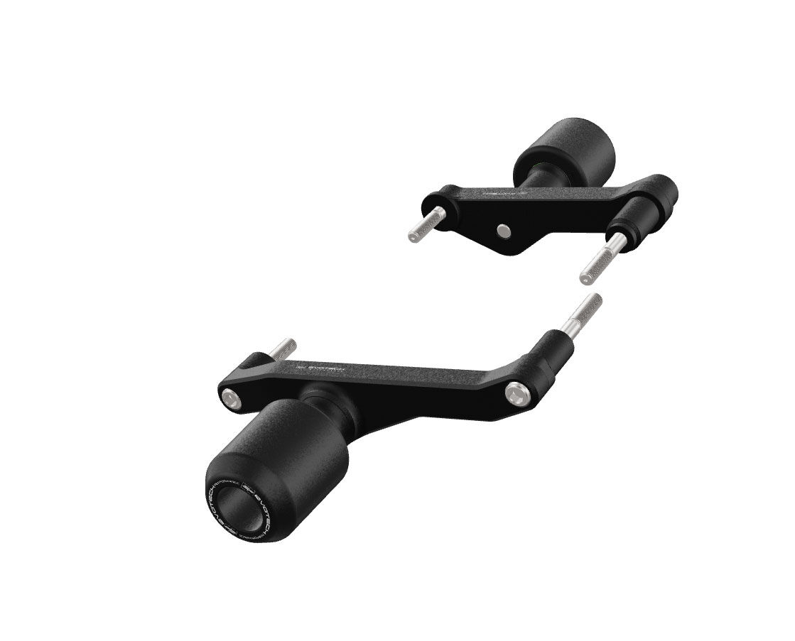 Each kit features a precision CNC-machined aluminium bracket finished in a durable matt black powder coat for long-lasting protection. Large 60 mm EP nylon crash bobbins with an internal aluminium core are positioned on either side of the bike to absorb impact forces in the event of a drop or slide. Installation is simple and requires no modifications, using the motorcycle’s existing mounting points, and replacement fasteners are supplied for a perfect fit.