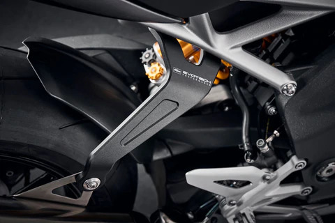 Remove the pillion pegs on your Speed Triple 1200 RR with this kit that has been CNC machined from aircraft-grade aluminium and powder coated black.