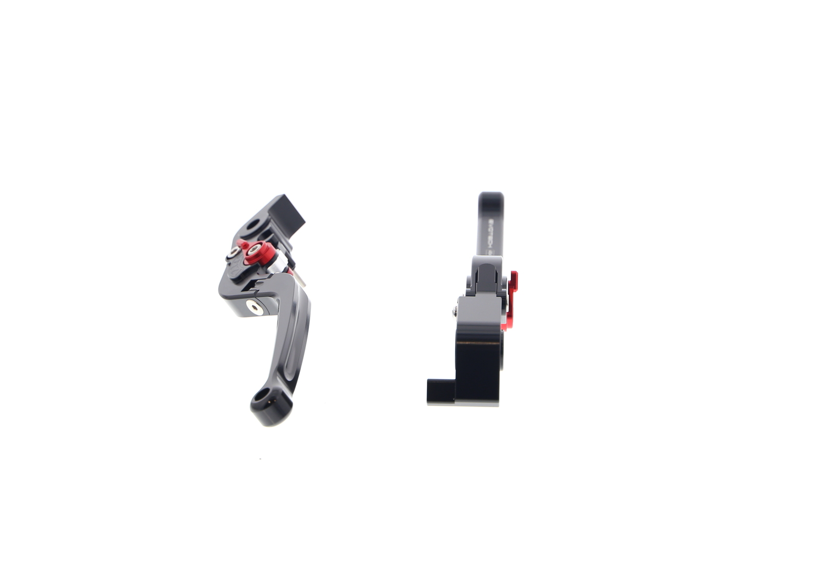 BRAND: Evotech Performance SKU: PRN002406-002408-42These folding brake and clutch levers for the Panigale 899 have been machined from billet aluminium and finished in anodised black coating. They have a red 6 position adjuster which makes those little tweaks easier.