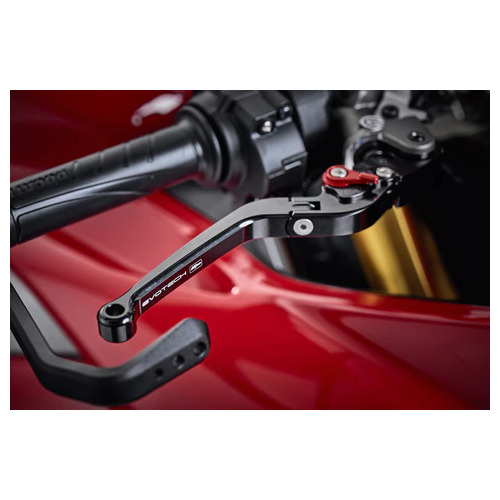 BRAND: Evotech Performance SKU: PRN002406-002408-71These standard length levers for the Panigale V2 are designed to fold up out of the way in the event of a fall, then simply clicking back into place once you're upright.