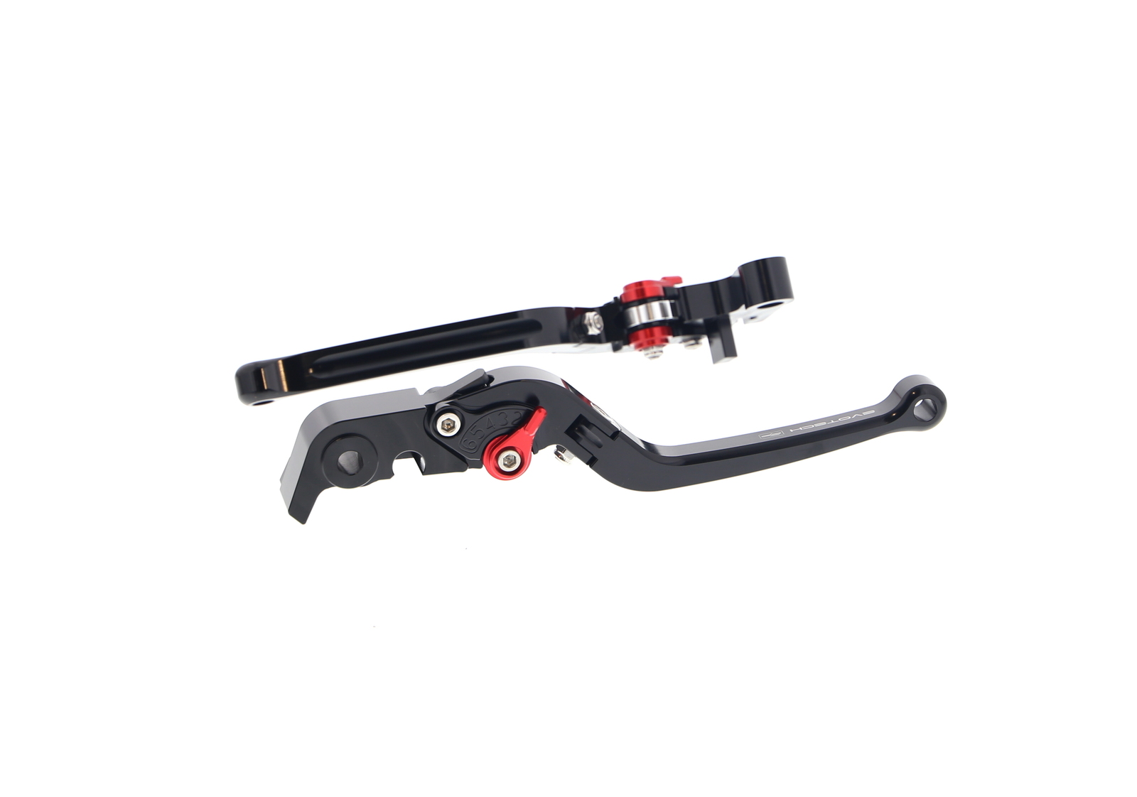 BRAND: Evotech Performance SKU: PRN002406-004289-02These levers for the Daytona 675R are fully foldable and designed to rotate out of harms way if you have a fall. They are super-high quality, beautifully crafted, and have a 6 positioning adjuster with a red coating to help make those little adjustments even easier.