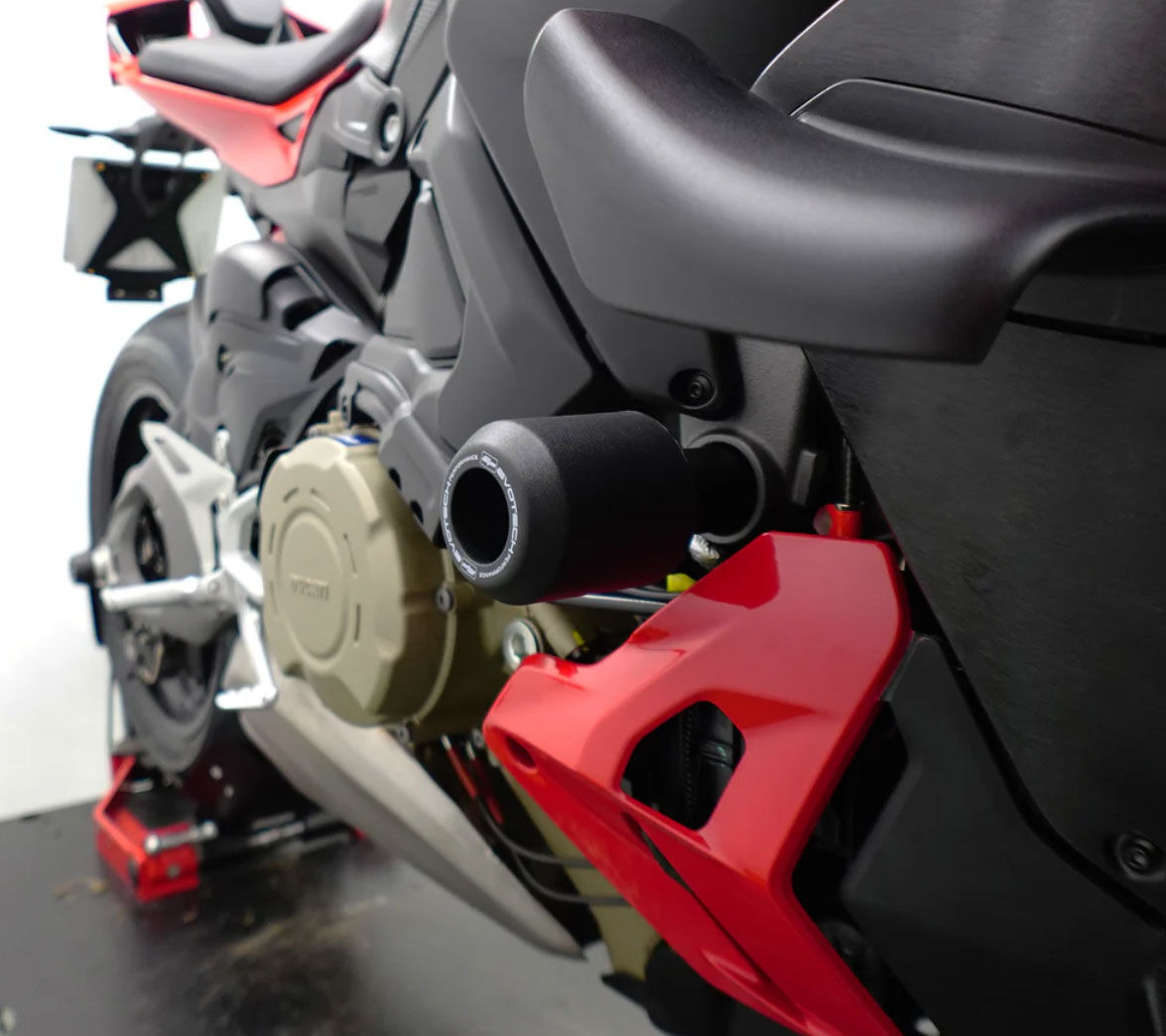 Evotech Performance crash protection for the Ducati Streetfighter V4 is precision engineered to integrate seamlessly with the motorcycle while helping reduce damage in the event of a drop or slide. By absorbing impact early, the crash bobbins assist in protecting key components and minimising costly repairs.