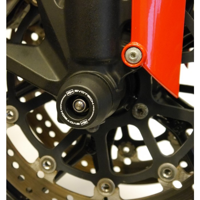 BRAND: Evotech Performance SKU: PRN013313-04Protect the front fork bottoms and brake callipers on your Hypermotard 821 with these spindle bobbins (axle sliders) from Evotech Performance.