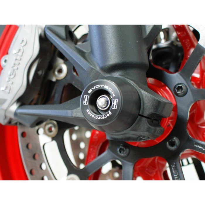 BRAND: Evotech Performance SKU: PRN011933-10These front fork spindle bobbins (axle sliders) for the Multistrada 1200 S Granturismo have been made from high performance engineering polymer. They are retained by a stainless steel spindle and stainless nyloc nuts.