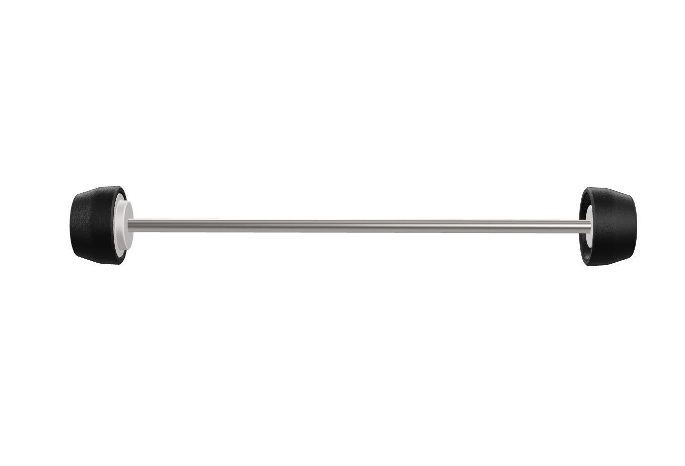 The compact black bobbins sit neatly on either side of the front spindle and are secured using a precision-engineered stainless steel spindle rod. Manufactured from tough injection-moulded nylon with an aluminium core, the bobbins are designed to take initial impact in the event of a drop or low-speed incident.