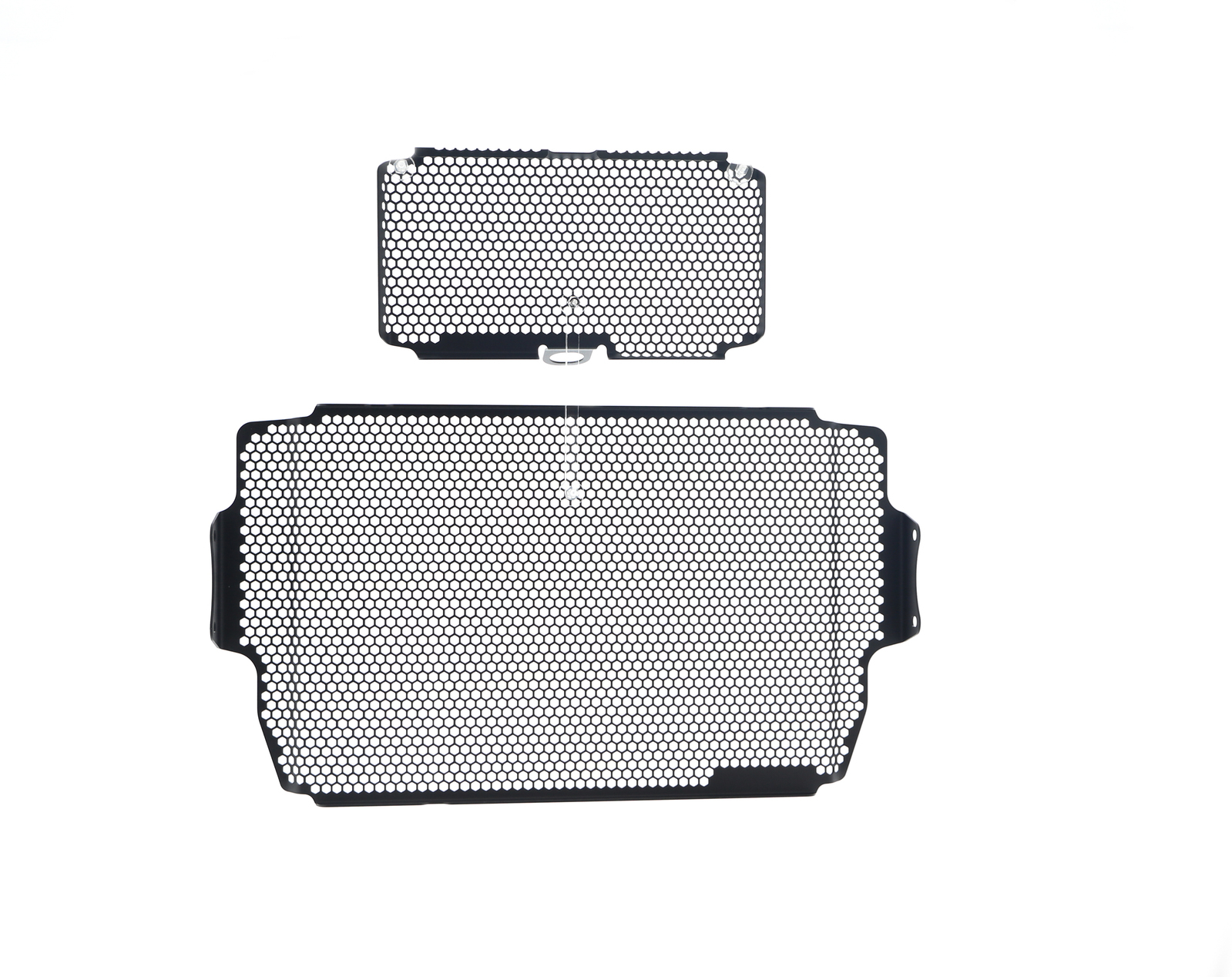 The guards have a hexagonal hole pattern to optimise airflow while providing maximum protection from road debris. Longevity is ensured by a black powder coating. Your motorcycle does not need to be modified as the guards attach to the existing mounting points.