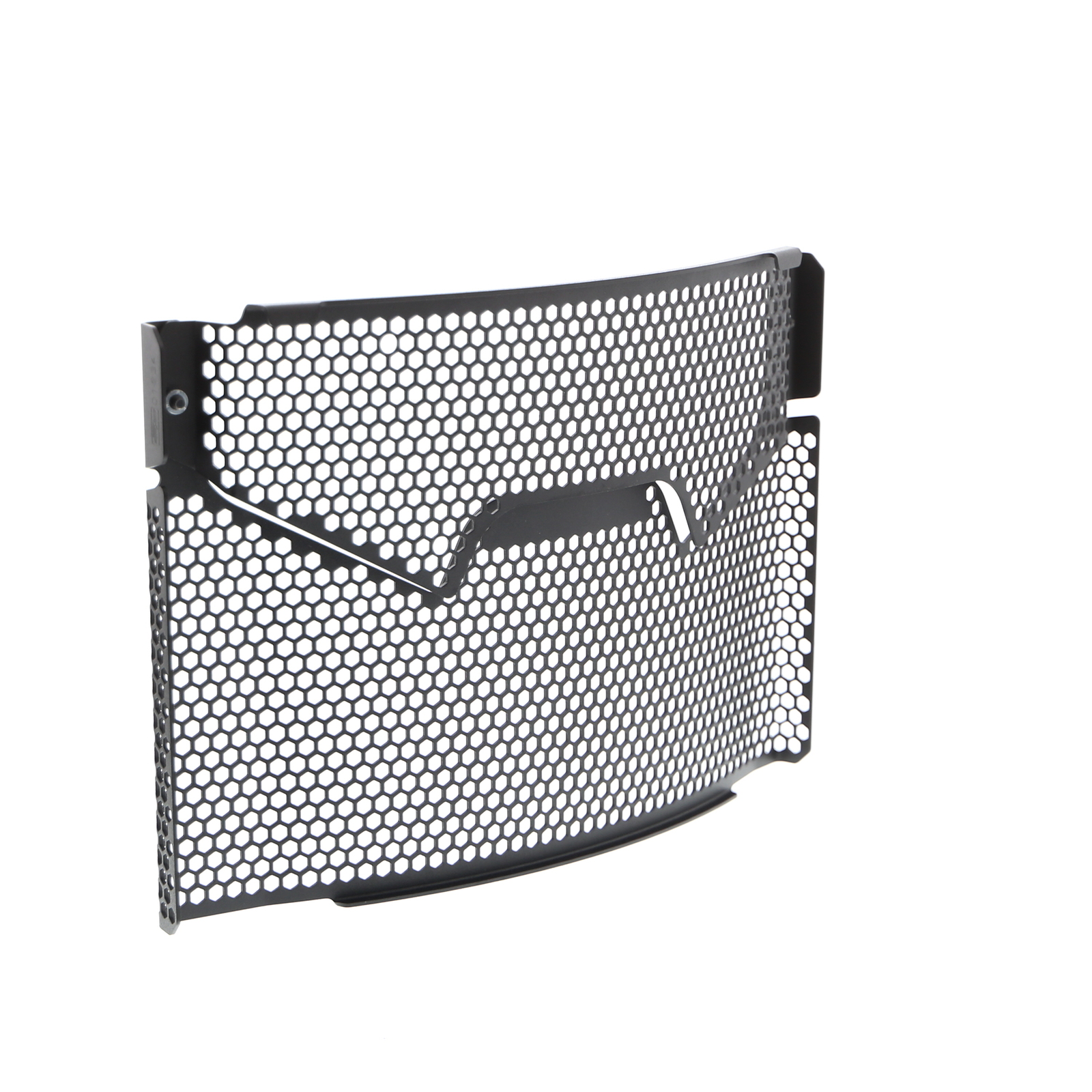 BRAND: Evotech Performance SKU: PRN014919-01This two piece radiator guard designed in the UK by Evotech Performance is the perfect solution to protecting your new radiator from dangerous road debris. The guard is easy to install, attaching directly to your bike existing mounting points, which means no modifications are necessary. It's CNC machined from marine grade aluminium and finished with a black powder coating, providing the ultimate protection and longevity of your guard.
