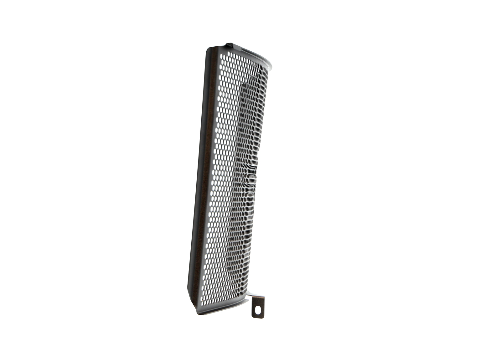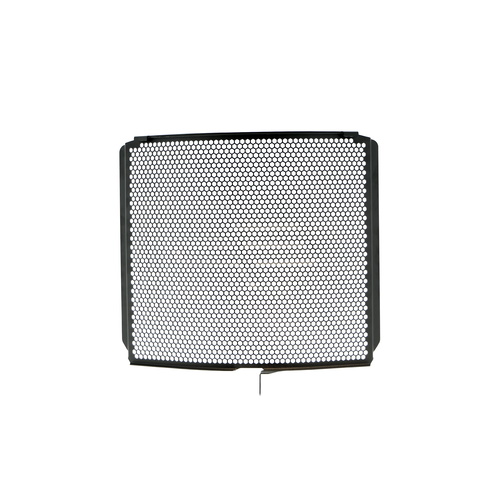This radiator guard is finished in a durable black powder coating and has a hexagonal hole design which provides excellent protection from road debris, while still allowing maximum airflow through to the radiator.