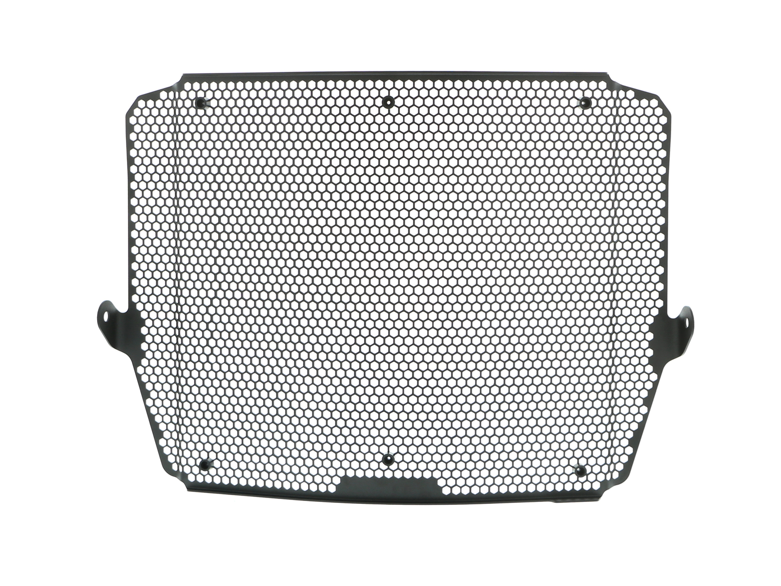 BRAND: Evotech Performance SKU: PRN014754-01Protect the radiator on your Street Triple RS from debris with this radiator guard from Evotech Performance. The guard requires no modifications to your bike as it uses the existing mounting points. The guard is CNC machined from aircraft quality aluminium and the hexagonal hole pattern allows for airflow through to the radiator and still provide maximum protection.