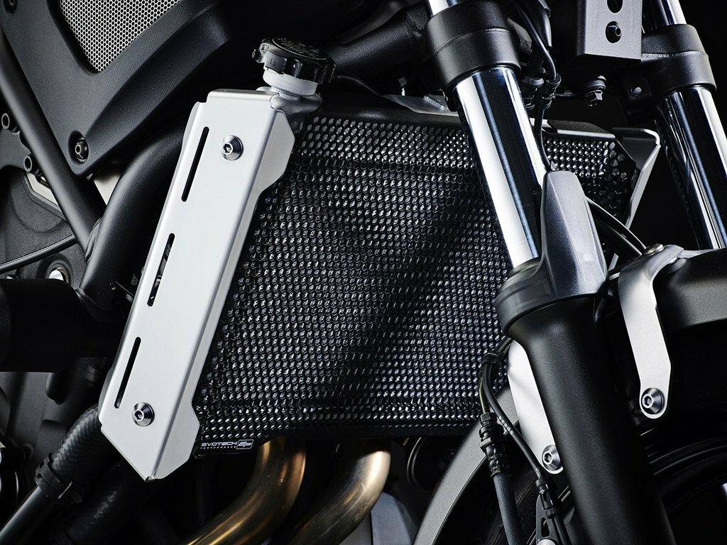 BRAND: Evotech Performance SKU: PRN011714-05Protect your XSR700 X-Tribute radiator from dents and holes with this guard from Evotech Performance that has been CNC machined from lightweight aircraft-grade aluminium. The guard is pierced with hexagonal holes to maximise airflow through to the radiator, while still providing maximum protection. No modifications are needed to the bike, as the guard simply attaches to the Yamaha's existing mounting points. Finished in a durable black powder coating, all fixings included.